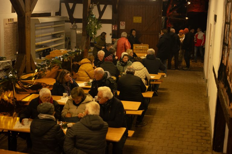 Trotz zapfiger Temperaturen ließen es sich viele Besucher nicht nehmen, nach Hausen zu kommen. Bei Glühwein, Kakao mit Schuss, Kaffee oder einem kühlen Bier konnten sich die Gäste von innen wärmen und das gemütliche Ambiente genießen.