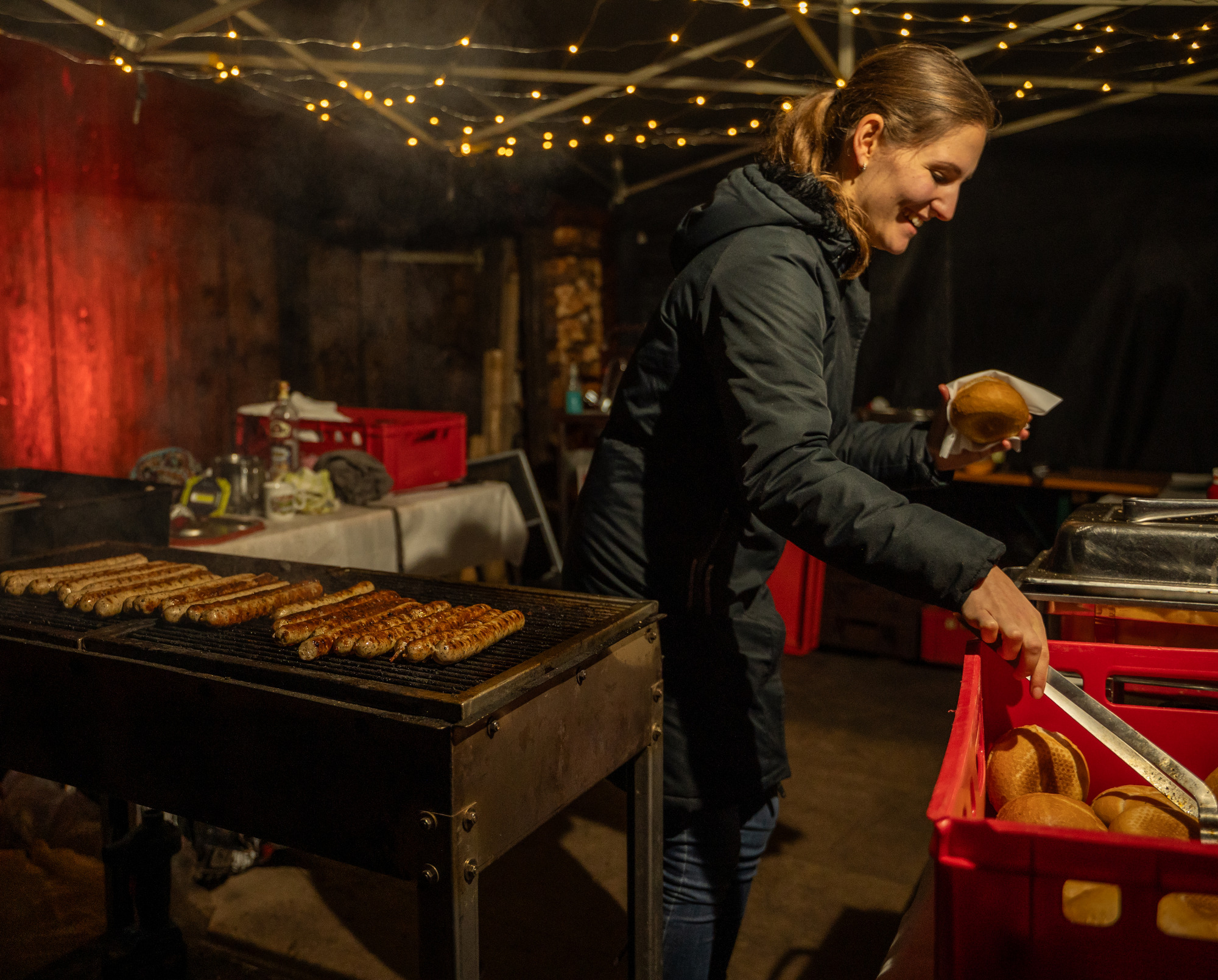 Trotz frostiger Temperaturen strömten viele Gäste nach Hausen, um sich bei Glühwein, heißem Kakao, Kaffee oder einem Bier aufzuwärmen und die besondere Atmosphäre zu genießen. Auch kulinarisch blieb kein Wunsch offen: Frische Pizza und deftige Bratwürste fanden großen Anklang.